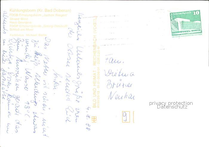 72382943 alte Postkarte Kuehlungsborn Ostseebad Strand Schloss am Meer Haus Georgine postalisch gelaufen Erhaltung siehe scans KatCode: 11110013051042