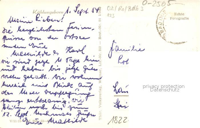 43109425 alte Postkarte Kuehlungsborn Ostseebad Strassenpartie Restaurant Kaffee Hotel postalisch gelaufen Erhaltung siehe scans [FriedD77] KatCode: 11110013051042