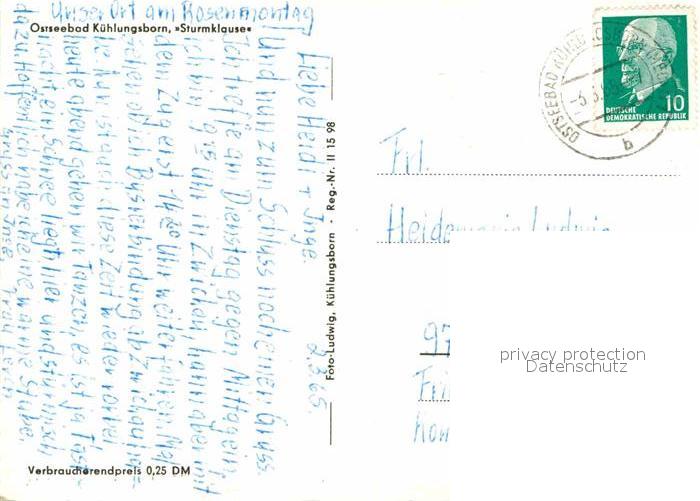 72703245 alte Postkarte Kuehlungsborn Ostseebad Sturmklause postalisch gelaufen Erhaltung siehe scans [AndreD76] KatCode: 11110013051042