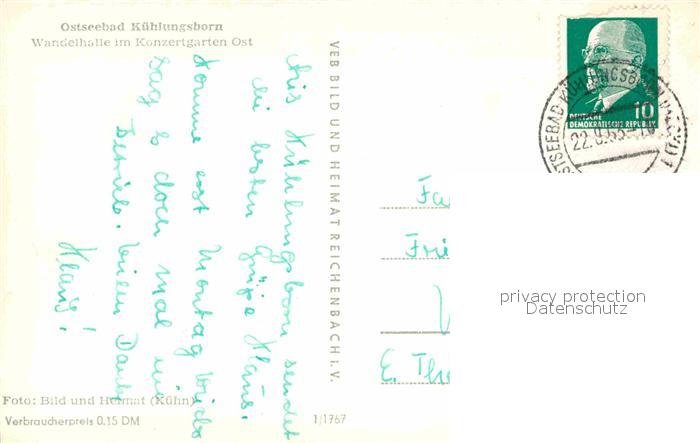 72919942 alte Postkarte Kuehlungsborn Ostseebad Wandelhalle im Konzertgarten Ost postalisch gelaufen Erhaltung siehe scans [WerneD78] KatCode: 11110013051042