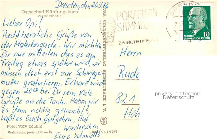 72710501 alte Postkarte Kuehlungsborn Ostseebad Wandelhalle postalisch gelaufen Erhaltung siehe scans [FriedD77] KatCode: 11110013051042