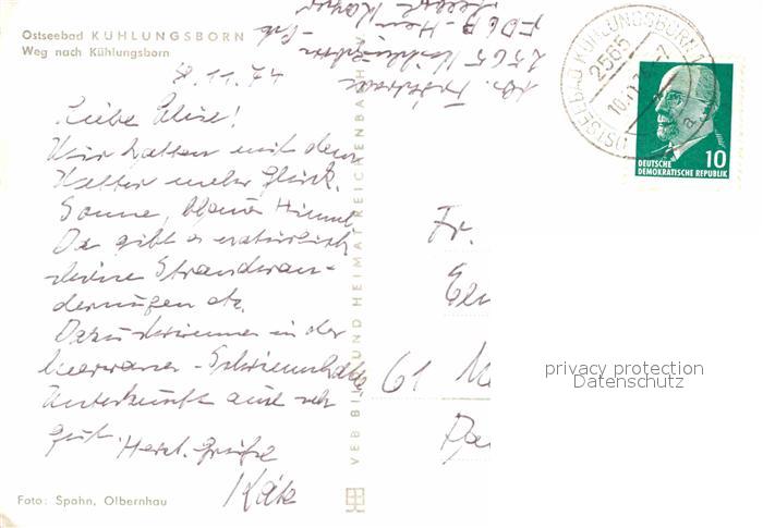 72633341 alte Postkarte Kuehlungsborn Ostseebad Weg nach Kuehlungsborn an der Kueste postalisch gelaufen Erhaltung siehe scans [FriedD77] KatCode: 11110013051042