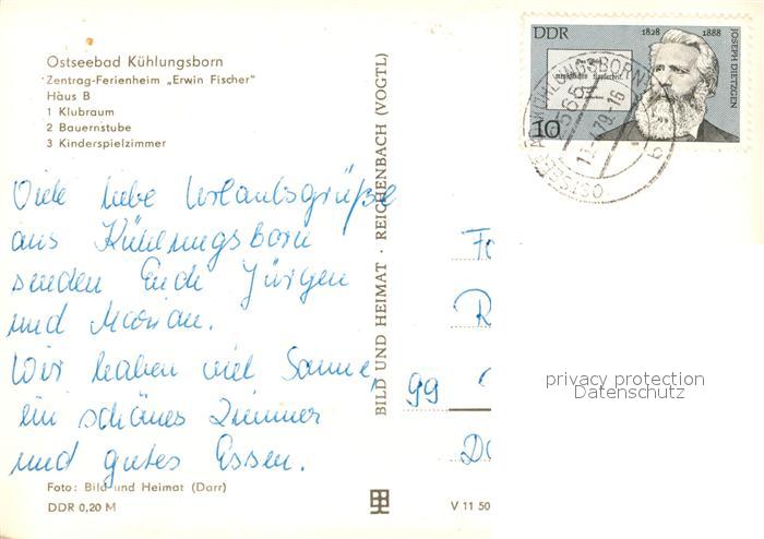 73593512 alte Postkarte Kuehlungsborn Ostseebad Zentrag Ferienheim Erwin Fischer Klubraum Bauernstube Kinderspielzimmer postalisch gelaufen Erhaltung siehe scans [FriedD77] KatCode: 11110013051042