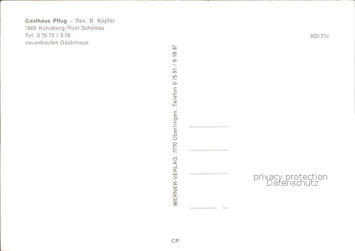 72338338 Kuenaberg Gasthaus Pflug postalisch nicht gelaufen Erhaltung siehe scans KatCode: 11110008336079