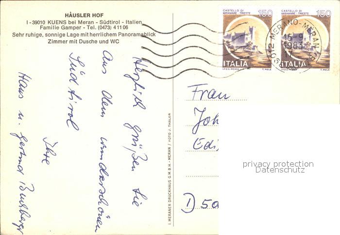 old postcard Kuens Haeusler Hof Pension postalisch gelaufen Erhaltung siehe scans