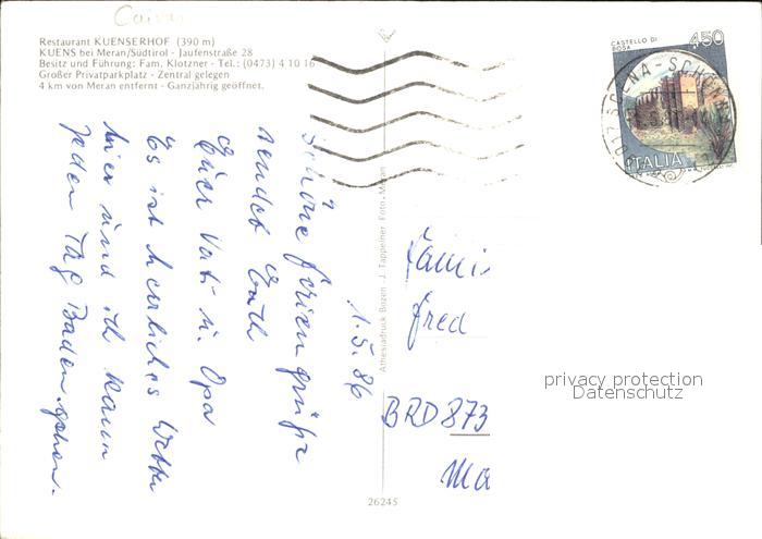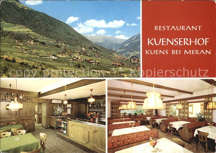 old postcard Kuens Panorama Restaurant Kuenserhof Gastraeume postalisch gelaufen Erhaltung siehe scans