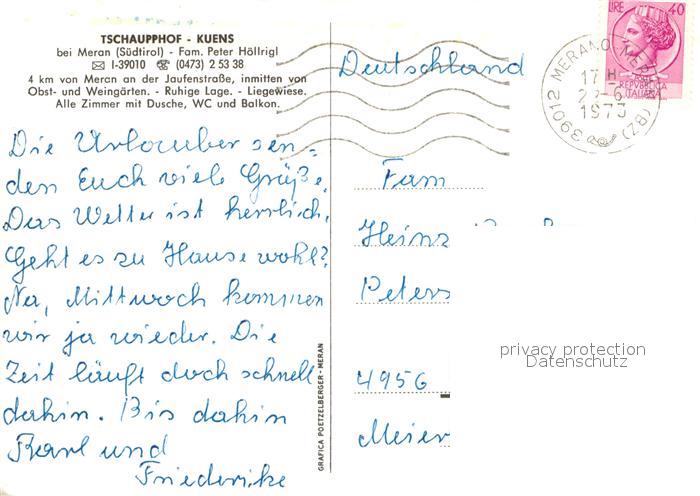old postcard Kuens Tschaupphof postalisch gelaufen Erhaltung siehe scans [KathaD81]