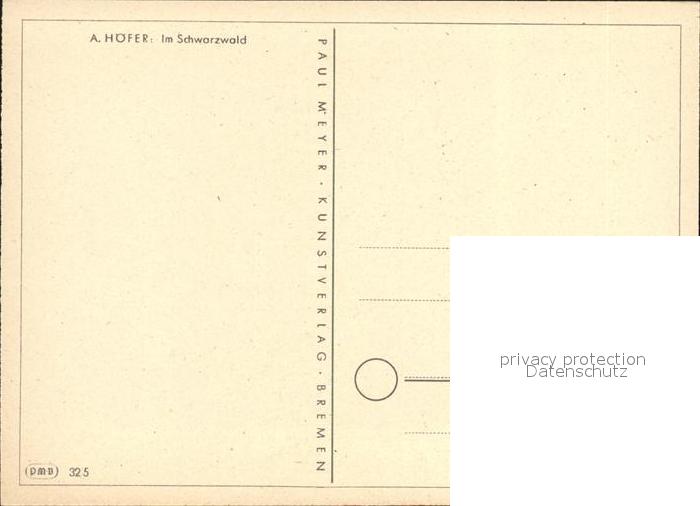 Kuenstlerkarte A. Hoefer Im Schwarzwald postalisch nicht gelaufen Erhaltung siehe scans