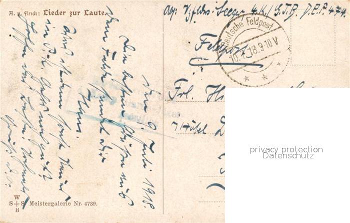 Kuenstlerkarte A. v. Finck Lieder und Laute Mandoline