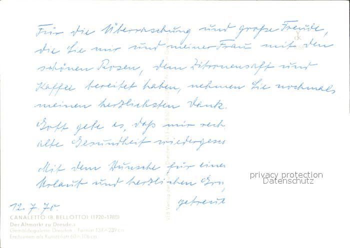 Kuenstlerkarte B. Bellotto Canaletto Altmarkt Dresden postalisch nicht gelaufen Erhaltung siehe scans