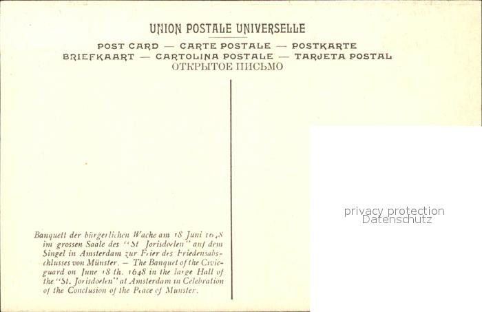 11782423 Kuenstlerkarte Bart ban der Helst Banquet de la Garde Civique Grande Salle St. Jorisdoelen Paix de Münster KatCode 22240000003200