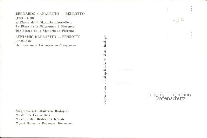 Kuenstlerkarte Bernardo Canaletto Bellotto Piazza della Signoria Firenze postalisch nicht gelaufen Erhaltung siehe scans