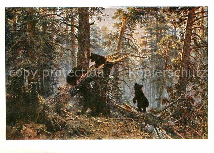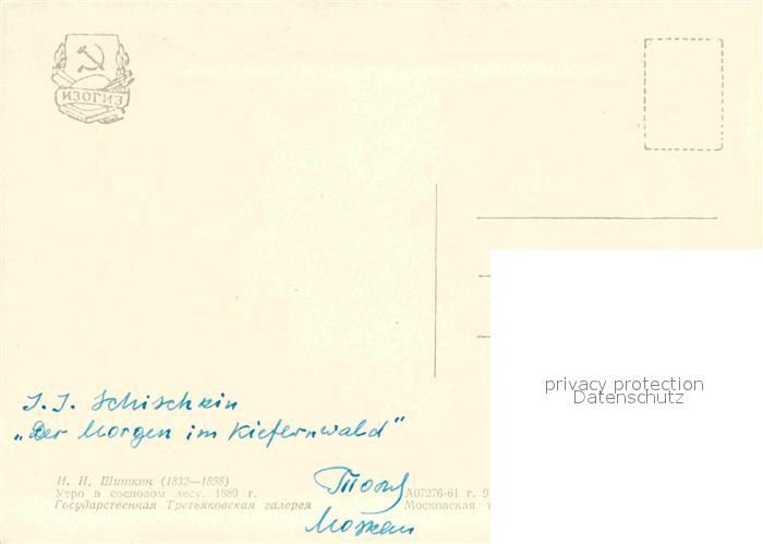 Kuenstlerkarte Der MOrgen im Diefernwald I.I. Schischkin postalisch nicht gelaufen Erhaltung siehe scans [NatalD47]