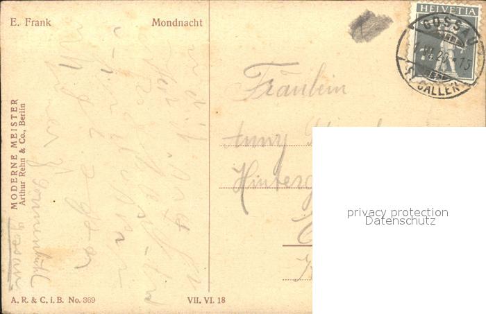 alte Postkarte Kuenstlerkarte E. Frank Mondnacht postalisch gelaufen Erhaltung siehe scans