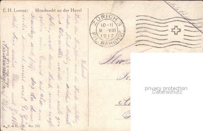 alte Postkarte Kuenstlerkarte E.H. Lorenz Mondnacht an der Havel Nr. 295 postalisch gelaufen