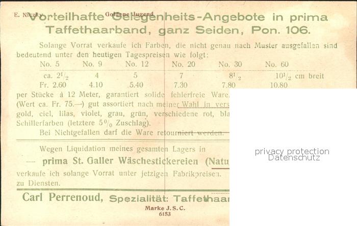 Kuenstlerkarte E. Niczky Gold ne Jugend Werbung Taffethaarbaender Basel