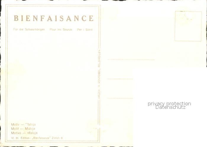 11664001 Kuenstlerkarte E. Zuppinger Maloja VI.31. Edition Bienfaisance KatCode 22240000003200