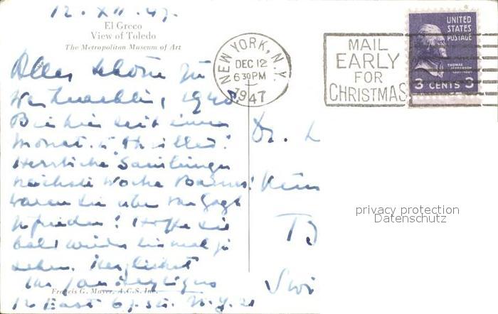 alte Postkarte Kuenstlerkarte El Greco View of Toledo postalisch gelaufen Erhaltung siehe scans