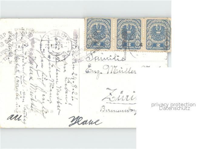 alte Postkarte Kuenstlerkarte Erwin Paul Wien Parlament postalisch gelaufen Erhaltung siehe scans