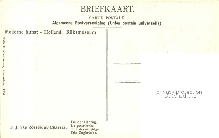 11782447 Kuenstlerkarte F. J. van Rossum du Chattel Le pont-levis Zugbrücke KatCode 22240000003200