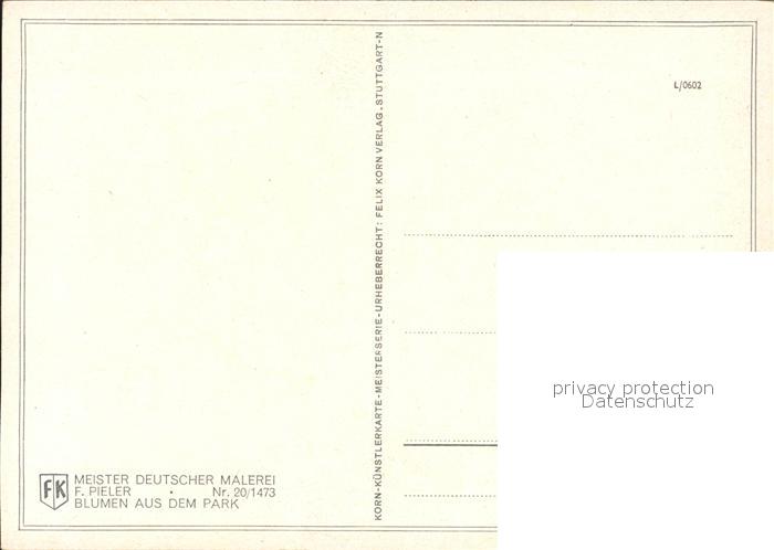 Kuenstlerkarte F. Pieler Blumen aus dem Park Nr. 20/1473 postalisch nicht gelaufen Erhaltung siehe scans