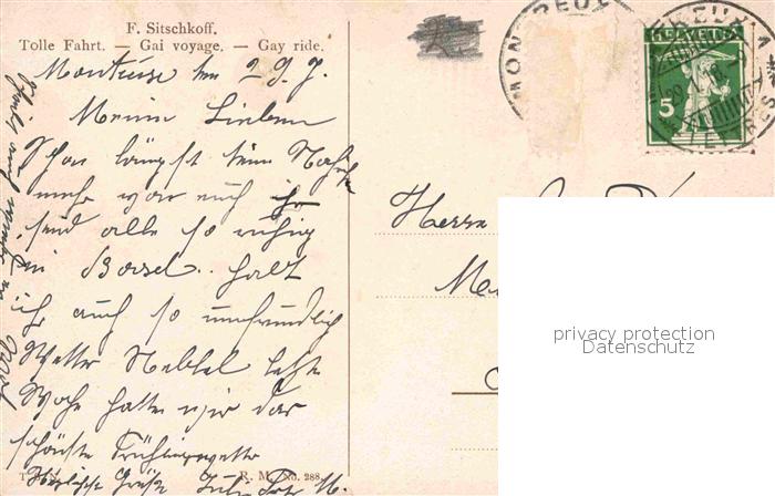alte Postkarte Kuenstlerkarte F. Sitschkoff Tolle Fahrt Schlitten postalisch gelaufen Erhaltung siehe scans [PaolaD17]