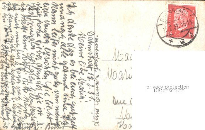 alte Postkarte Kuenstlerkarte F. v. Meyerhofer Mama’s Stolz Deutsche Kunst 501 postalisch gelaufen Erhaltung siehe scans