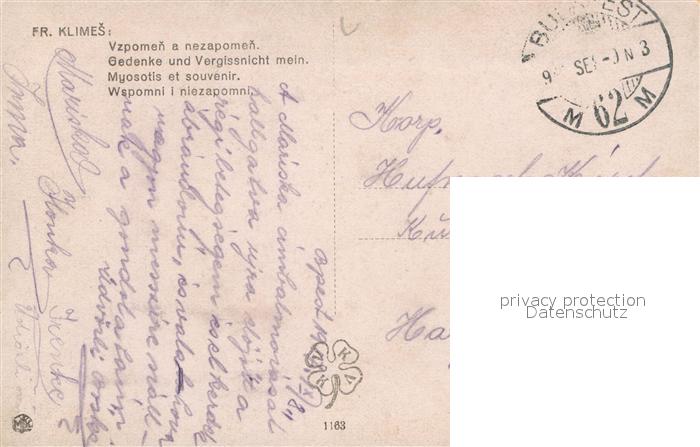 43019298 Kuenstlerkarte Fr. Klimes Vzpomen a nezapomen KatCode 22240000003200