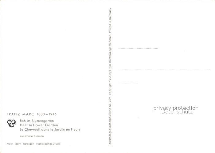 Kuenstlerkarte Franz Marc Reh im Blumengarten postalisch nicht gelaufen Erhaltung siehe scans