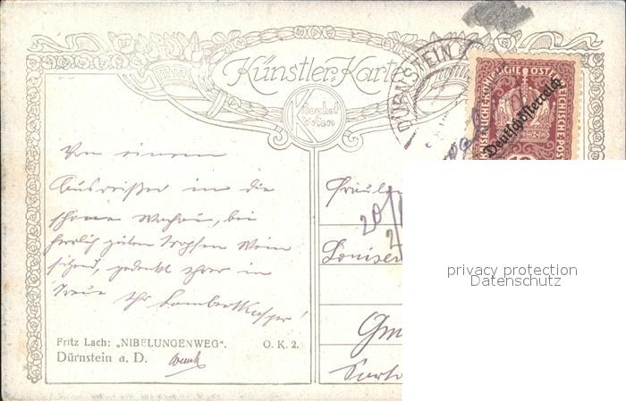 alte Postkarte Kuenstlerkarte Fritz Lach Nibelungenweg Duernstein Donau postalisch gelaufen Erhaltung siehe scans