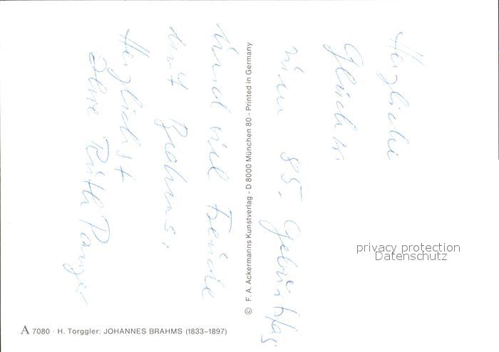 Kuenstlerkarte H. Torggler Johannes Brahms Nr. 7080 postalisch nicht gelaufen Erhaltung siehe scans