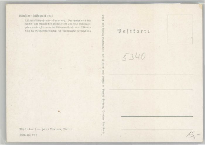 40667301 Kuenstlerkarte Hans Bremer Rhöndorf Künstler-Hilfswerk * KatCode 22240000003200