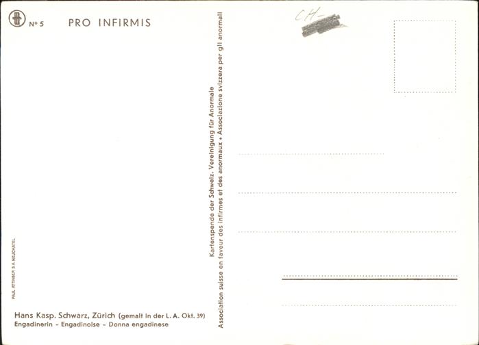 71373916 Kuenstlerkarte Hans Kasp. Schwarz Engadin Tracht KatCode 22240000003200