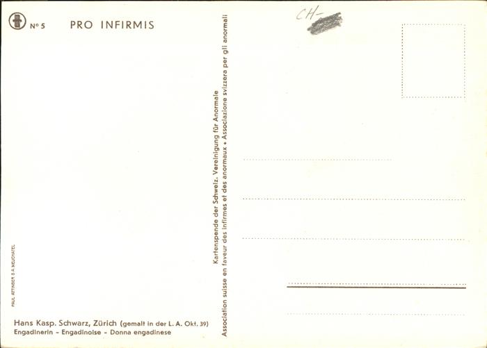 71373772 Kuenstlerkarte Hans Kasp. Schwarz Engadinerin Tracht Engadin KatCode 22240000003200