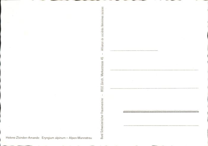 Kuenstlerkarte Helene Zbinden-Amande Alpen-Mannstreu