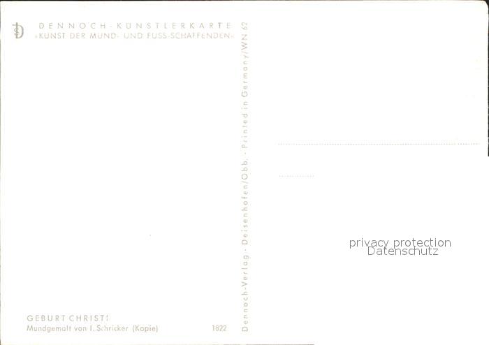 Kuenstlerkarte I. Schricker Geburt Christi Weihnachten Dennoch-Karte Nr. 1822 postalisch nicht gelaufen Erhaltung siehe scans
