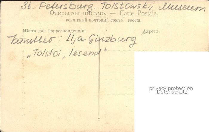 Kuenstlerkarte Ilja Ginzburg Tolstoi lesend St.-Petersburg Tolstowskij Museum postalisch nicht gelaufen Erhaltung siehe scans