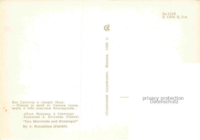 74041972 Kuenstlerkarte Ilya Muroments und Svyatogor postalisch nicht gelaufen Erhaltung siehe scans [IrynaD87] KatCode: 22240000003200