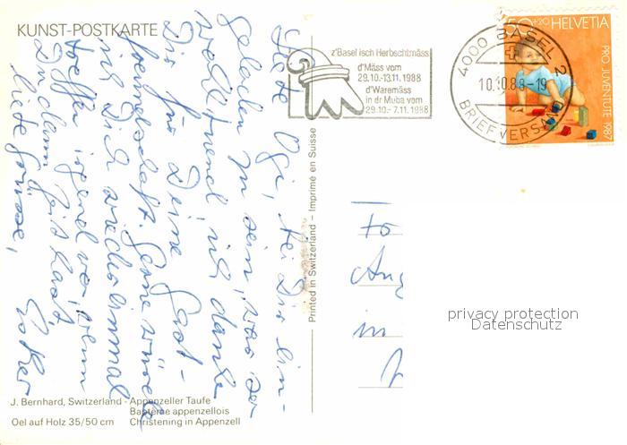 alte Postkarte Kuenstlerkarte J. Bernhard Appenzeller Taufe postalisch gelaufen Erhaltung siehe scans [PaolaD17]