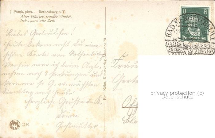 71530819 Kuenstlerkarte J. Frank Nr. 1140 Rothenburg-Tauber KatCode 22240000003200