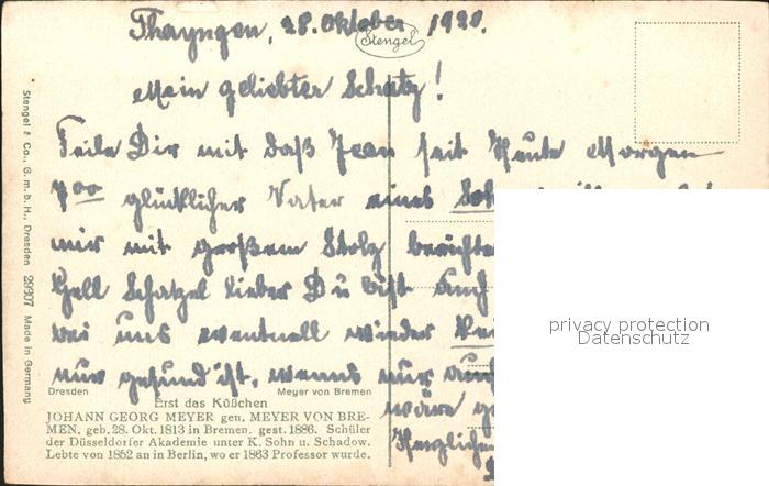 Kuenstlerkarte Johann Georg Meyer Erst das Küsschen Mu