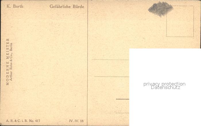 Kuenstlerkarte K. Barth Gefaehrliche Buerde Moderne Meister Engel postalisch nicht gelaufen Erhaltung siehe scans