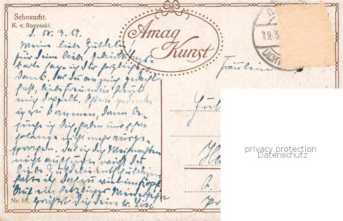 alte Postkarte Kuenstlerkarte K. v. Rozynski Sehnsucht postalisch gelaufen Erhaltung siehe scans [PaolaD17]