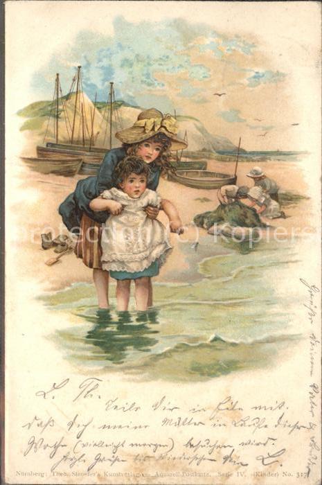 Kuenstlerkarte Kinder Meer Segelboote Fischerei