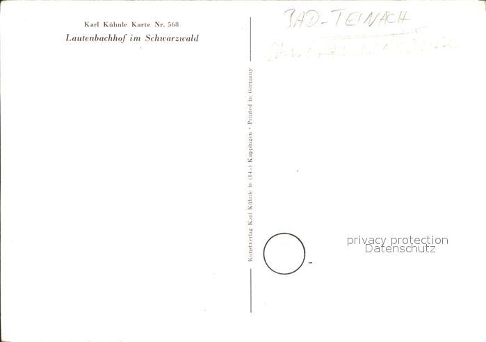 41608101 Kuenstlerkarte Lautenbachhof im Schwarzwald Karl Kühne Karte Nr. 568 KatCode 22240000003200