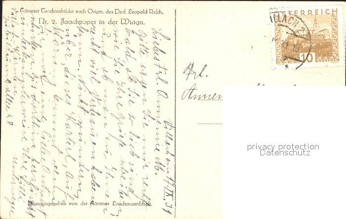 alte Postkarte Kuenstlerkarte Leopold Resch Fatschpoper in der Wiagn Nr. 2 postalisch gelaufen Erhaltung siehe scans