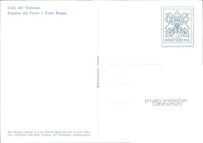 Kuenstlerkarte Lino Bianchi Barriviera Citta del Vaticano Fontana del Forno e Torre Borgia postalisch nicht gelaufen Erhaltung siehe scans [PaolaD17]
