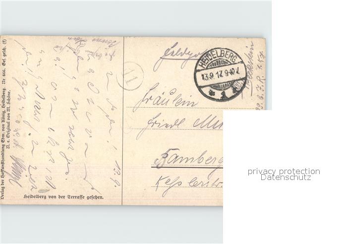 alte Postkarte Kuenstlerkarte M. Schoene Heidelberg von der Terrasse gesehen postalisch gelaufen Feldpost Erhaltung siehe scans