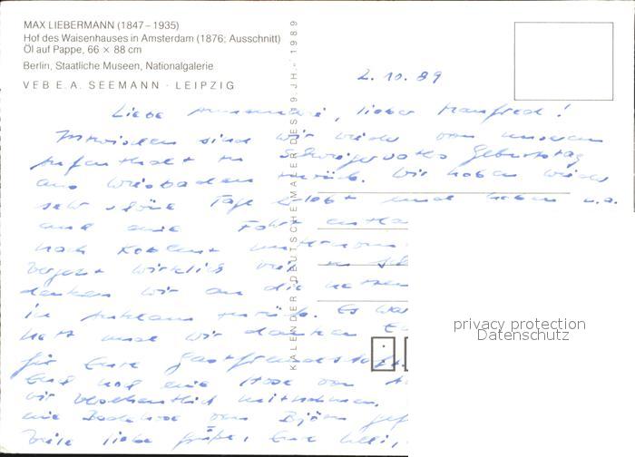 Kuenstlerkarte Max Liebermann Hof des Waisenhauses in Amsterdam postalisch nicht gelaufen Erhaltung siehe scans