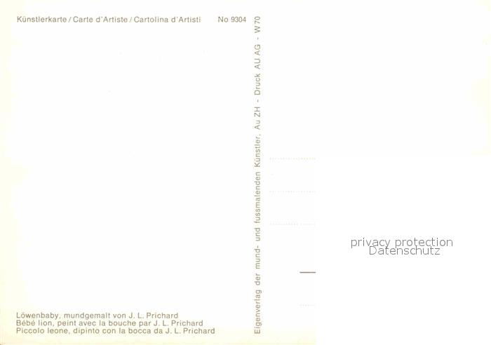 72685066 Kuenstlerkarte Mundgemalt J. L. Prichard Löwenbaby KatCode 22240000003200